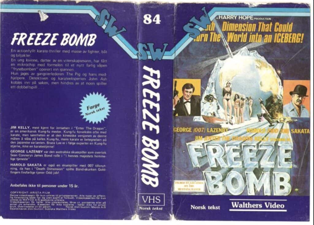Konseptet framover: Min metode er enkel. Eg blar gjennom gamle filmcover frå NorskVHS, oppdagar ein usett film, sporar han opp, ser han, og deler både meldinga og filmcoveret her på bloggen. Dagens videofangst er sjølvaste Freeze Bomb!