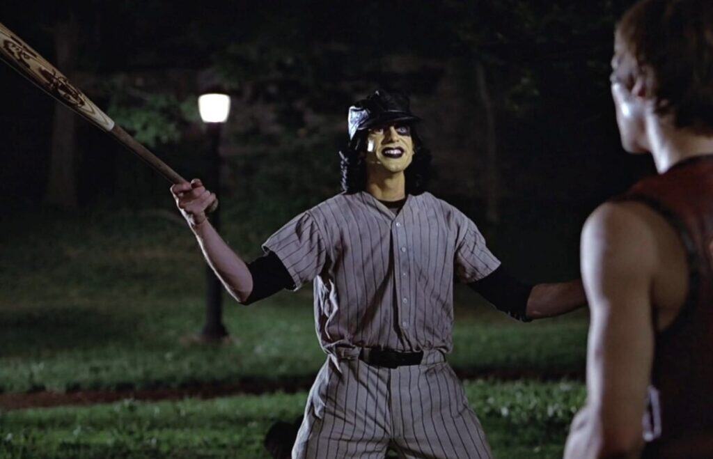 Men det desidert største høgdepunktet i filmen er David Patrick Kelly. Kven kan vel gløyme når Kelly sit i ein bil med tre glasflasker på fingrane, og vi høyrer «kling kling kling kling» etterfølgt av at han syng heilt falskt: «Waaarriors, come out and playèyey…»